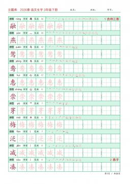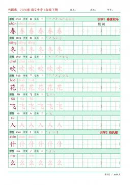 26春语文 生字字帖 语文1下
