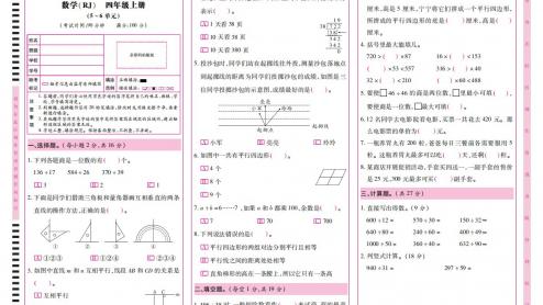 【打印下载】(25秋)数学4上-第二次月考质量监测卷